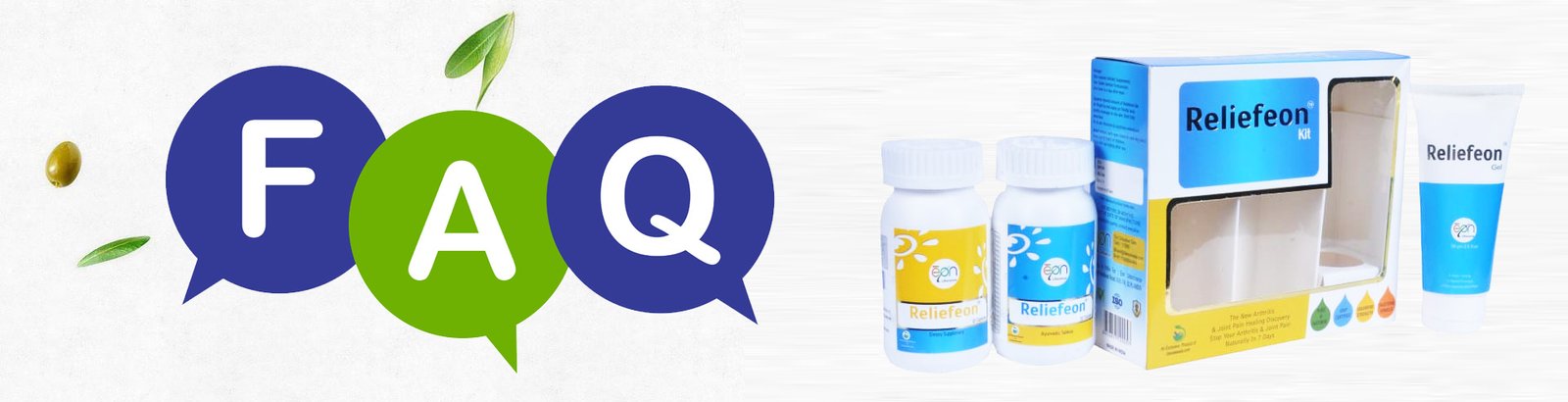Duplex board box of Reliefeon Kit contains (1) Reliefeon 30 capsules (2) Reliefeon 30 Tablets (3) Reliefeon Gel 50 gm.
